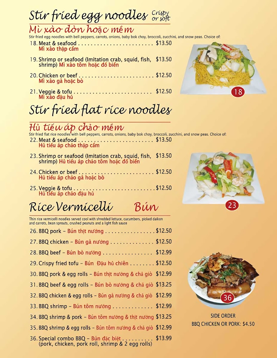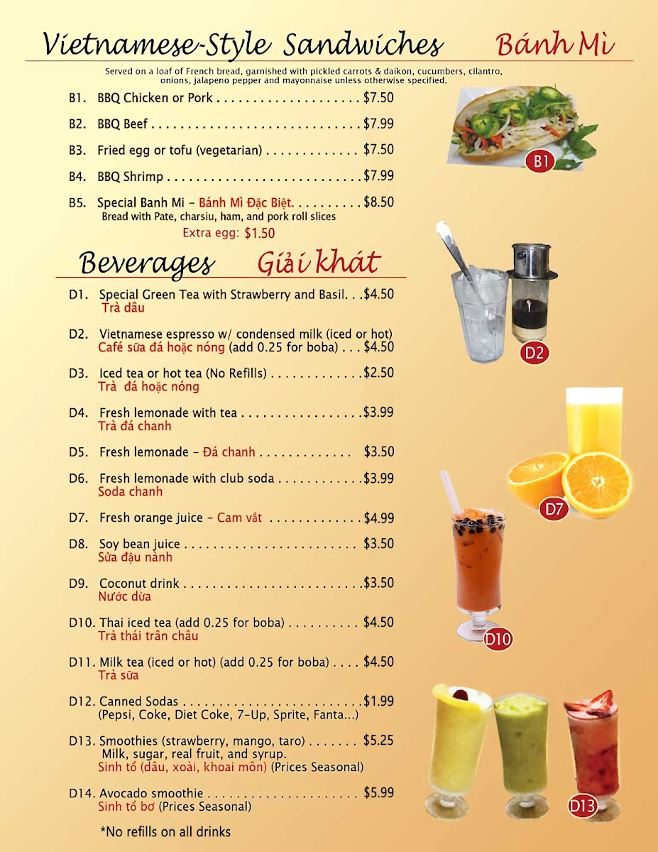 The menu highlights include an array of delectable banh mi sandwiches, with options like the Special Banh Mi and Grilled Shrimp, all marvelously seasoned. Their pho is a standout, renowned for its rich, aromatic broth and perfectly tender meats, as affirmed by delighted patrons. Don't miss the fresh spring rolls, celebrated for their exquisite flavor and freshness.